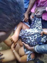 The alleged criminals were given merciless beatings and after they were stripped full naked and their naked pictures were taken by some of the irate mobs. But the video did not show if there were set ablaze as it alwas in the case of Jungle justice in Nigeria, but some of the guys in the video were heard telling one of the ladies to spread her legs so that they can take photos her private part.